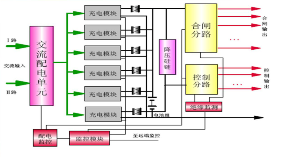 直流屏電源系統(tǒng)的主要功能單元包括交流配電單元、充電裝置、蓄電池組、降壓裝置、直流饋電單元以及監(jiān)控單元等。